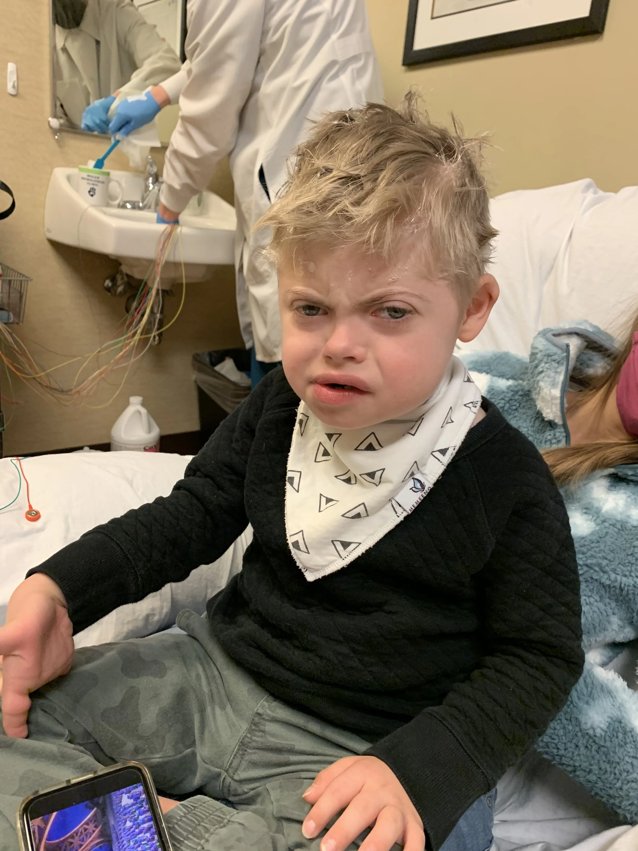 His EEG was much more successful than we gave him credit for. Sam’s nurse and I thought there was no way this was happening when we walked in and saw the amount of cords that needed to get glued to his head. Not only did it happen, he did fabulous. We concluded, the tech who did the EEG, did not fully understand the small miracle that took place in the room that day.