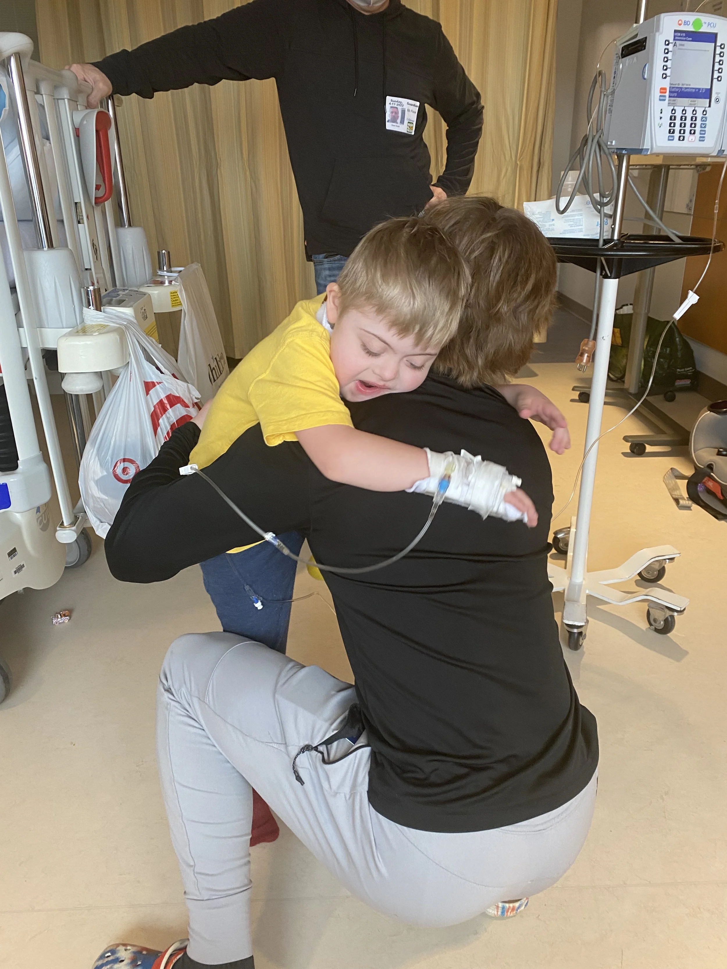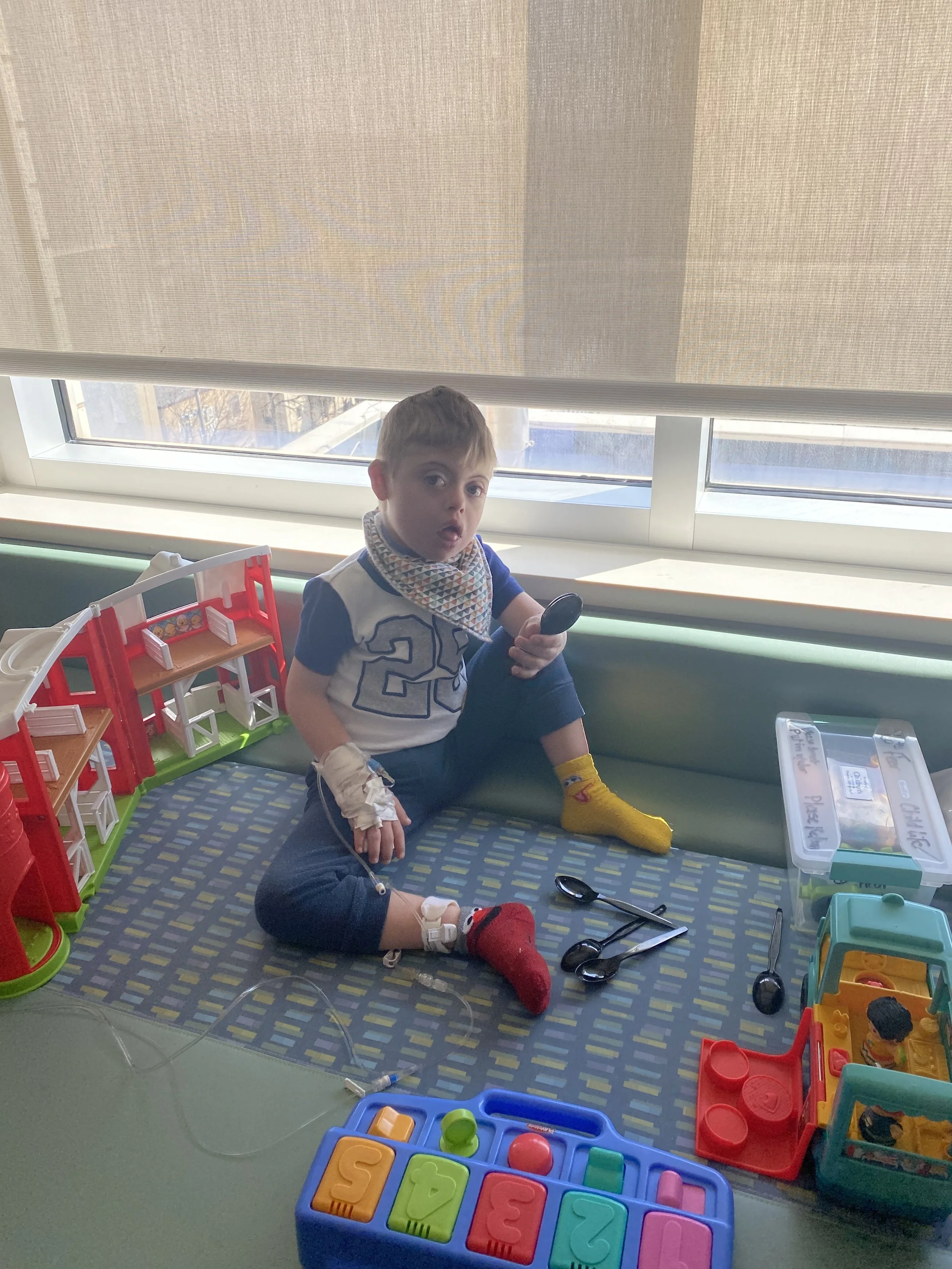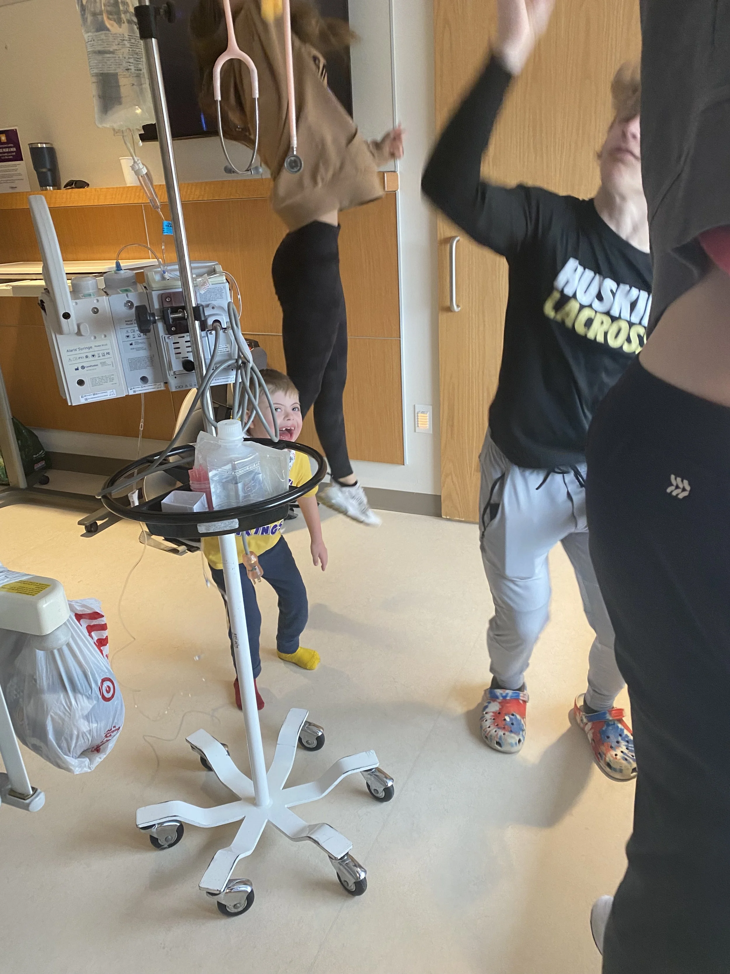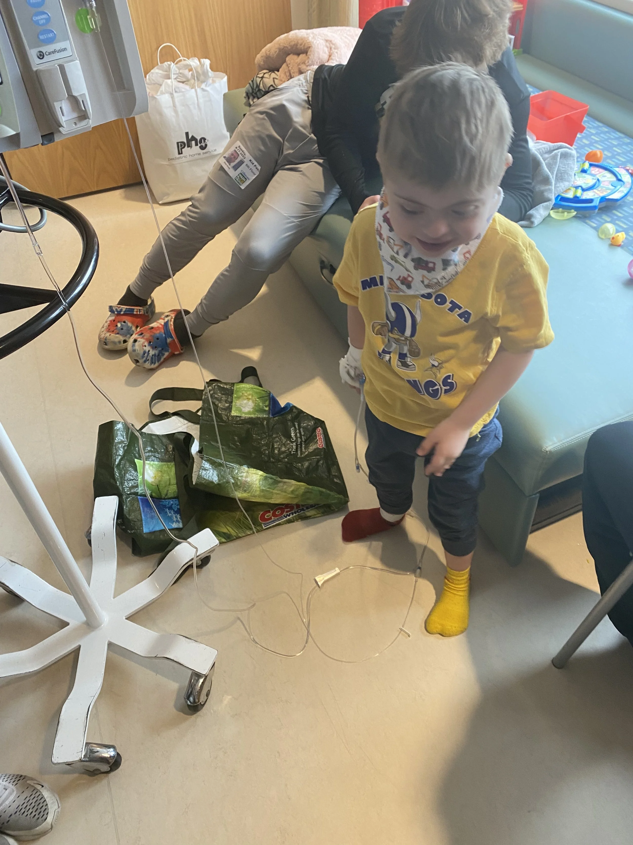 As the family was leaving yesterday, Sam started tugging on his IV to try take it off. He knows when the IV comes out, he gets to leave the hospital. Not yet buddy. I’m sorry. If that doesn’t tug at your heart strings, I don’t know what will.