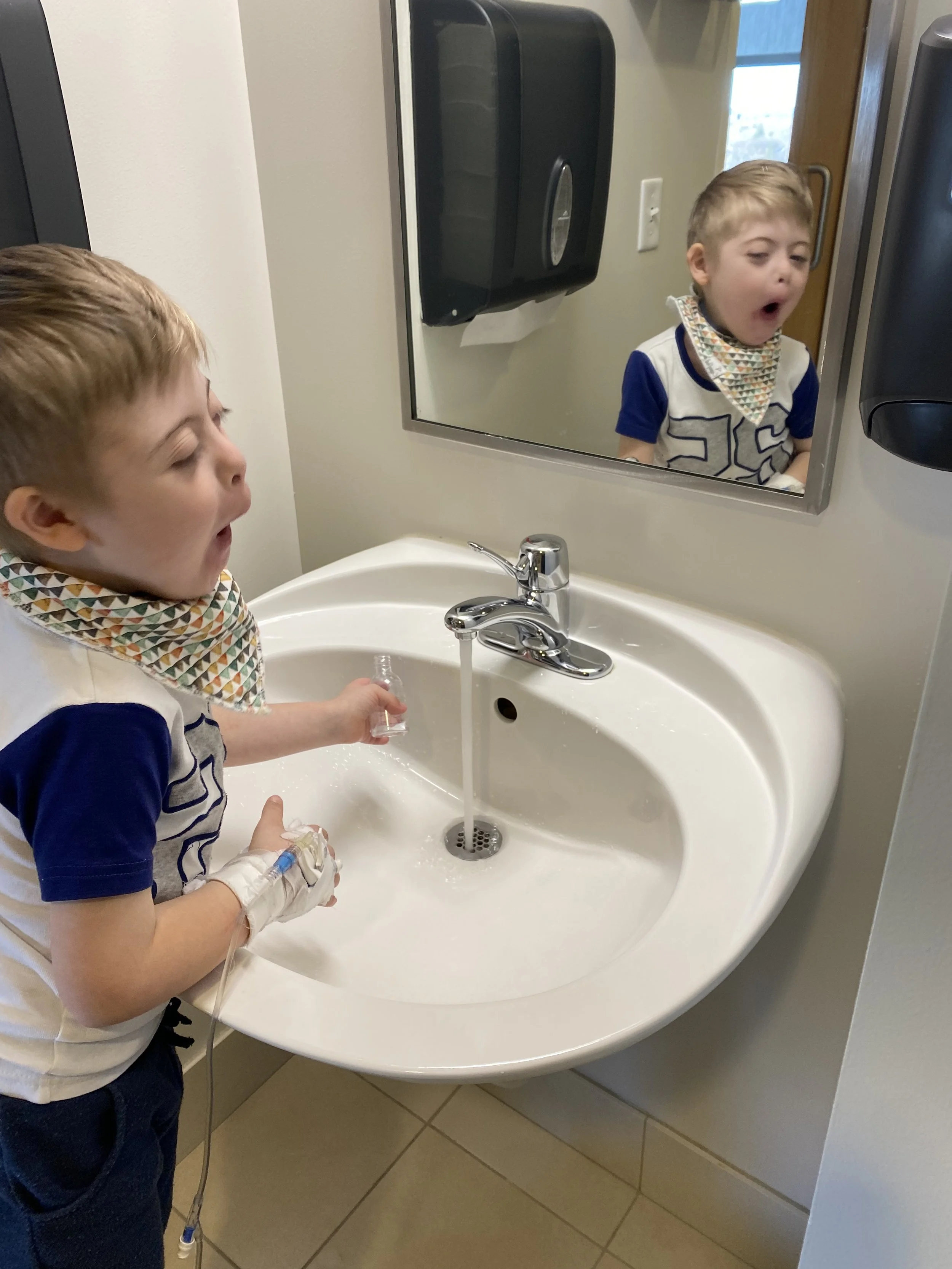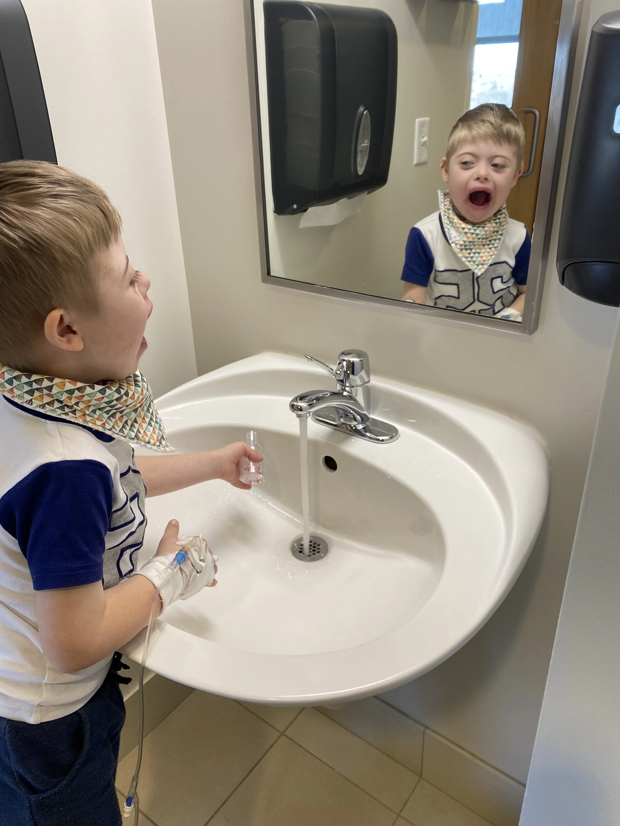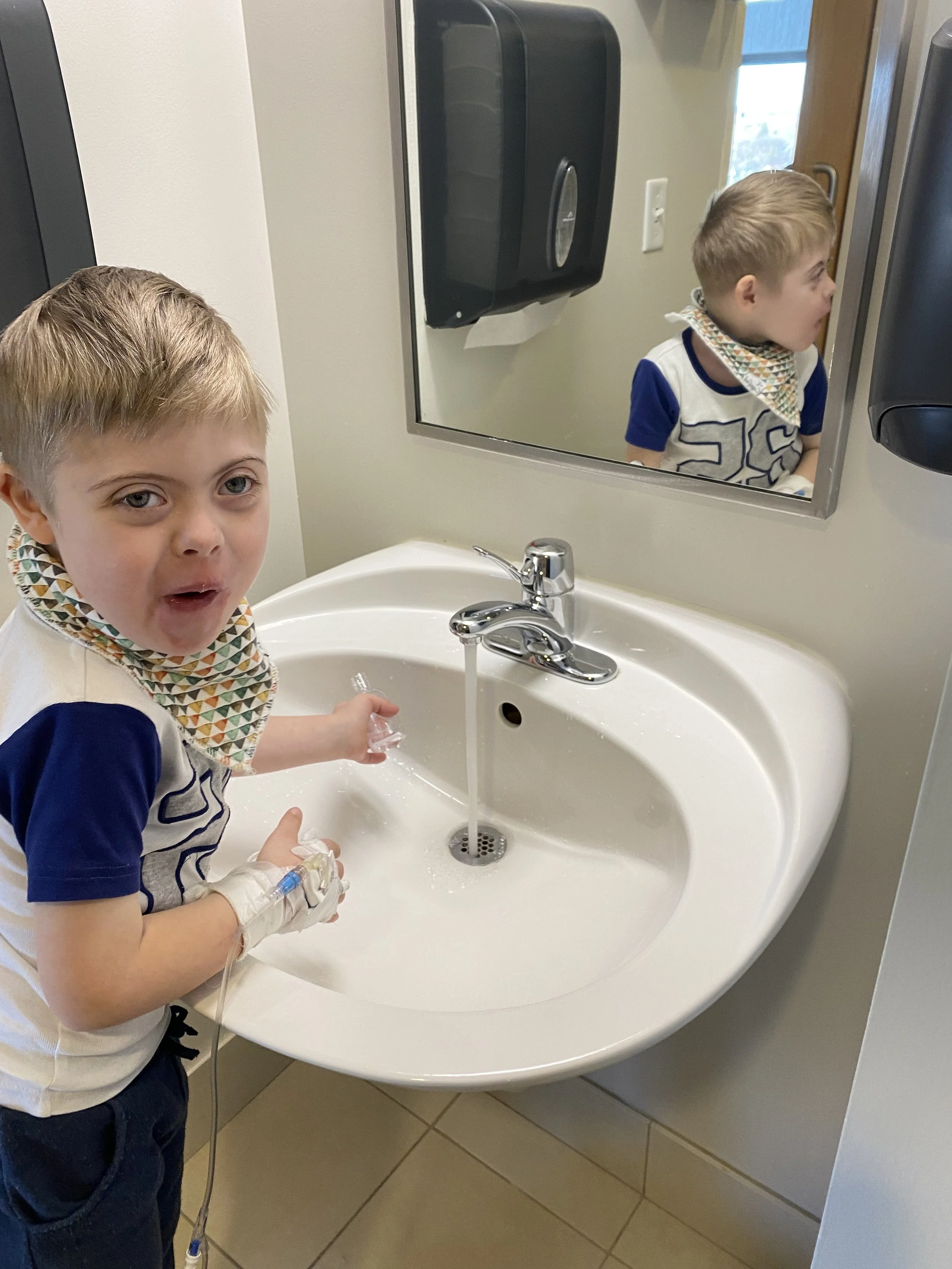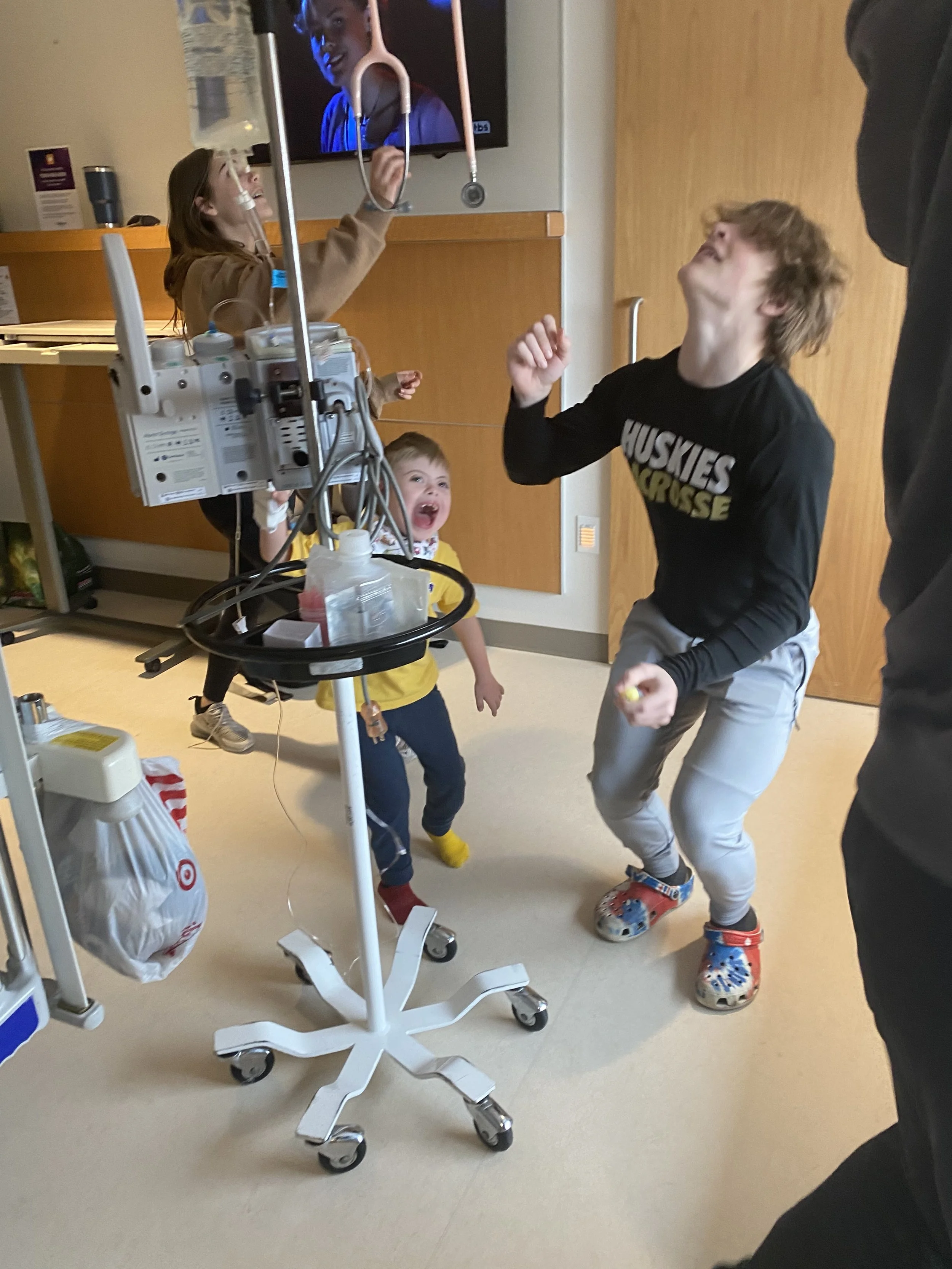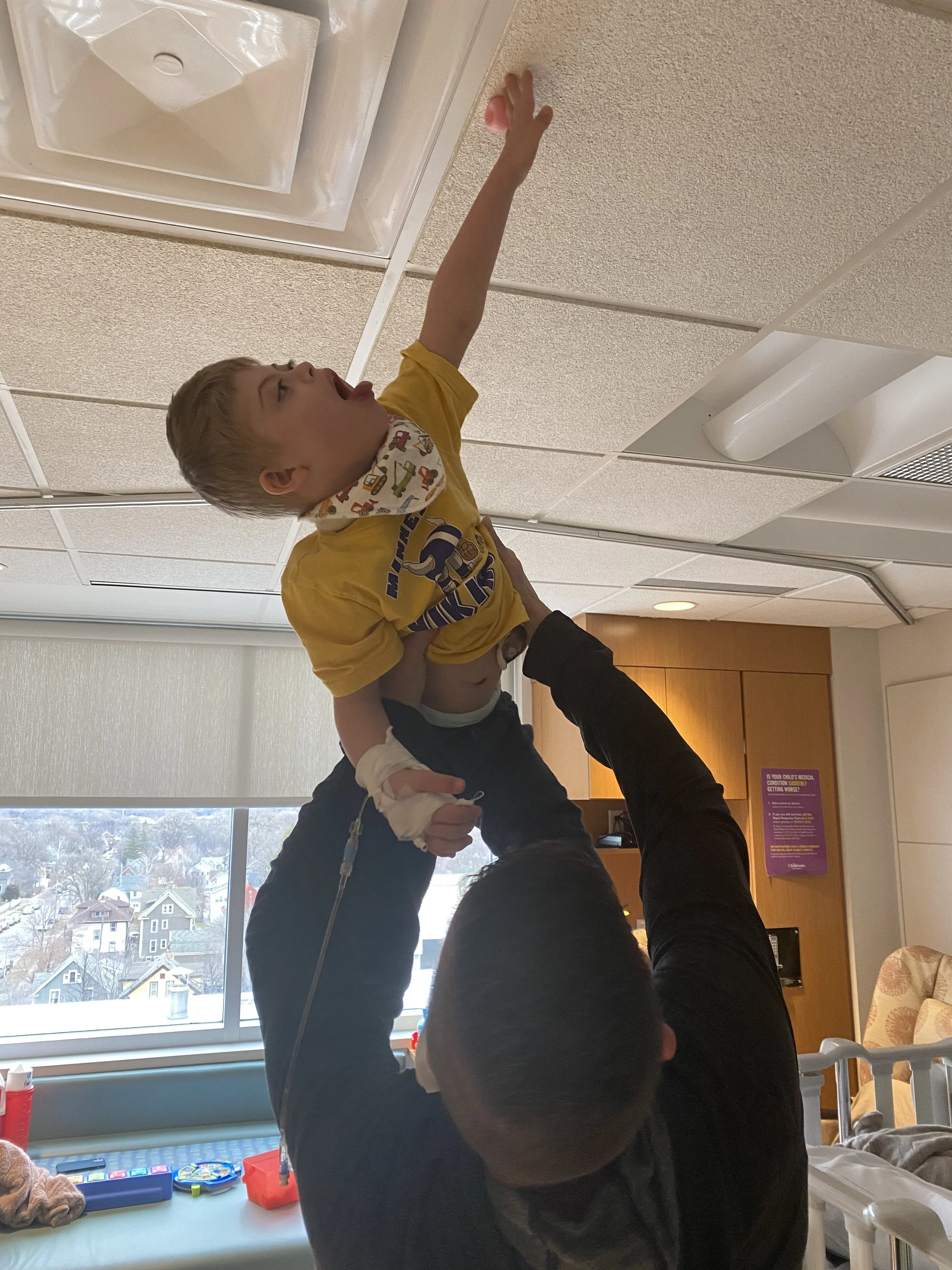As the family was leaving yesterday, Sam started tugging on his IV to try take it off. He knows when the IV comes out, he gets to leave the hospital. Not yet buddy. I’m sorry. If that doesn’t tug at your heart strings, I don’t know what will.