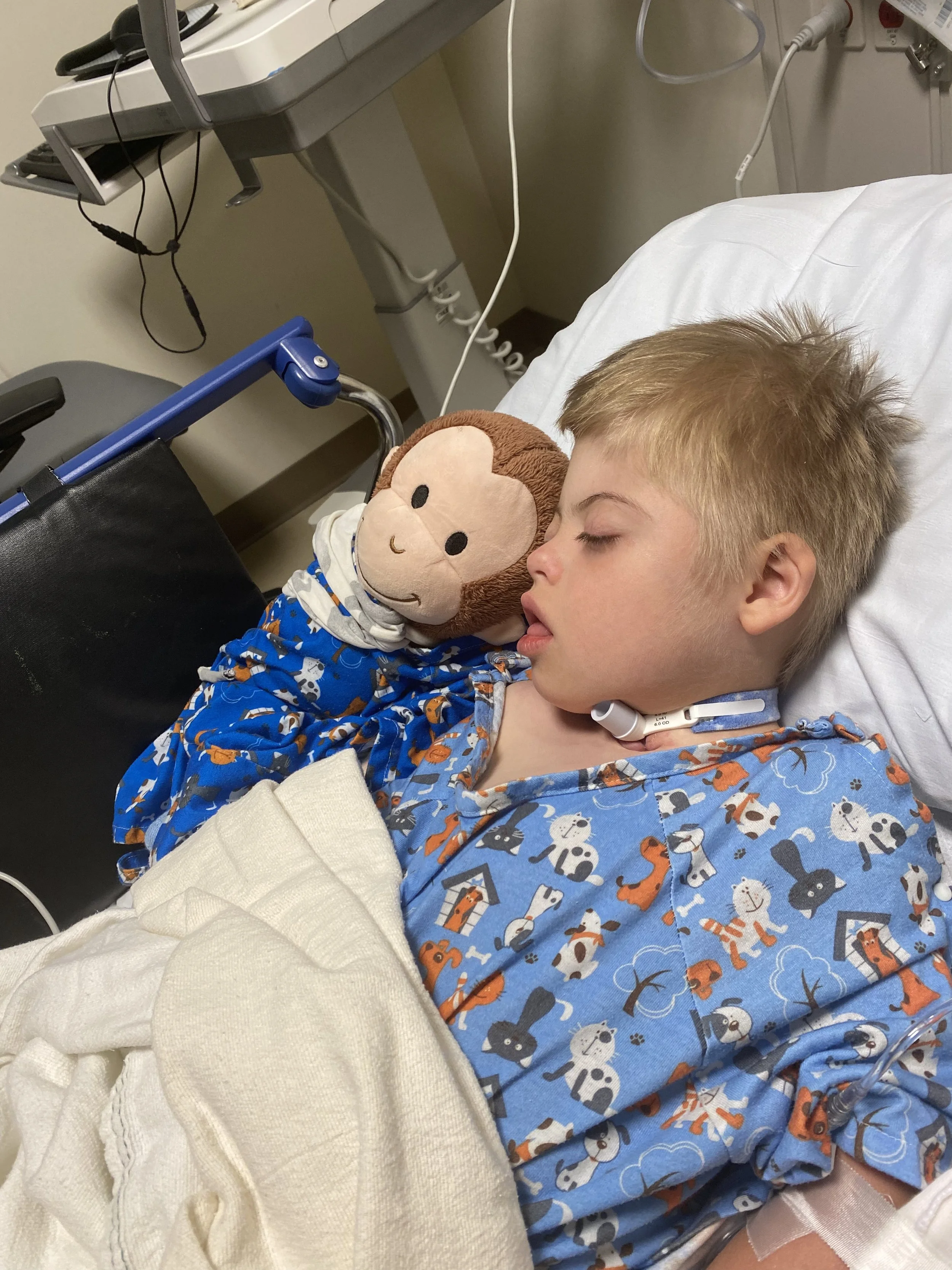 We went into Sam’s procedure with high hopes and low expectations. After what happened in Cincinnati, the odds of the surgery working were not in Sam’s favor. Here’s my analogy. Let’s say you get five sutures (stitches) in your airway. Within minutes of waking up after surgery, you start throwing up every fifteen minutes. The pressure from throwing up is most likely going break open all of the fresh sutures that were just placed. It makes sense that everyone had very low expectations, that few, if any sutures would stick.